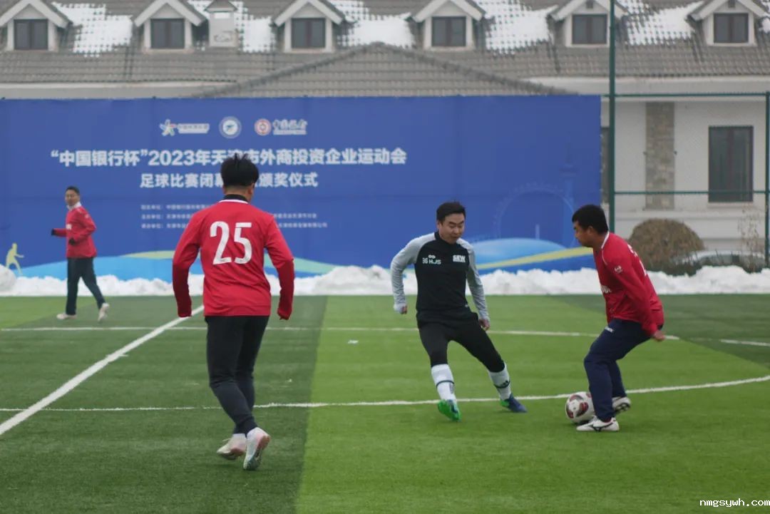 12月30日,“中国银行杯”2023年天津市外商投资企业运动会足球决赛在天津市河西区青少年足球训练基地上演精彩对决。四场比赛同时进行,冠亚军巅峰之战在三星电机和赛威传动两队之间展开。施洛特迎战施耐德争夺季军,5-8名在锦湖轮胎与诺和诺德,空中客车与东洋油墨之间展开。